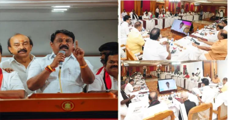 திமுகவின் திசைதிருப்பு நாடகத்தை நன்கு அறிந்து, பல கட்சிகள் கூட்டத்தினை புறக்கணித்துள்ள நிலையில், தோல்வி பயத்தில் உள்ள கட்சிகள் மட்டுமே இக்கூட்டத்தில் கலந்து கொண்டுள்ளதாகவும் அவர் கூறியுள்ளார்.