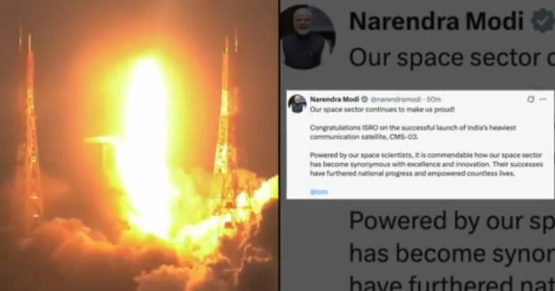இந்தியாவின் மிக கனமான CMS-03 தகவல் தொடர்பு செயற்கைக்கோளை வெற்றிகரமாக ஏவியதற்காக இஸ்ரோவிற்கு பிரதமர் மோடி பாராட்டுகளை தெரிவித்துள்ளார்.
