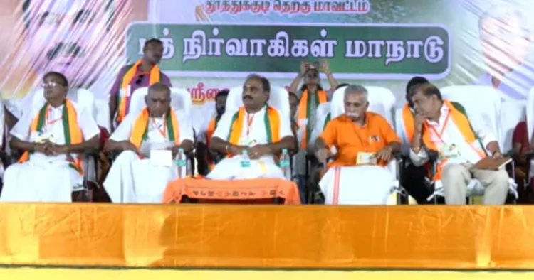 தூத்துக்குடி மாவட்டம், ஸ்ரீவைகுண்டம் வ.உ.சி திடலில், தெற்கு மாவட்ட பாஜக பூத் கமிட்டி நிர்வாகிகளின் ஆலோசனை கூட்டம் நடைபெற்றது.