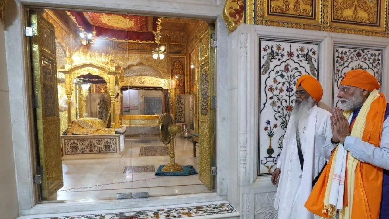 சீக்கியர்கள் போலவே, தலையில் டர்பன் கட்டிக்கொண்டு அங்கு வந்த பிரதமர் மோடி, தரையில் மண்டியிட்டு மனதார வணங்கினார்.