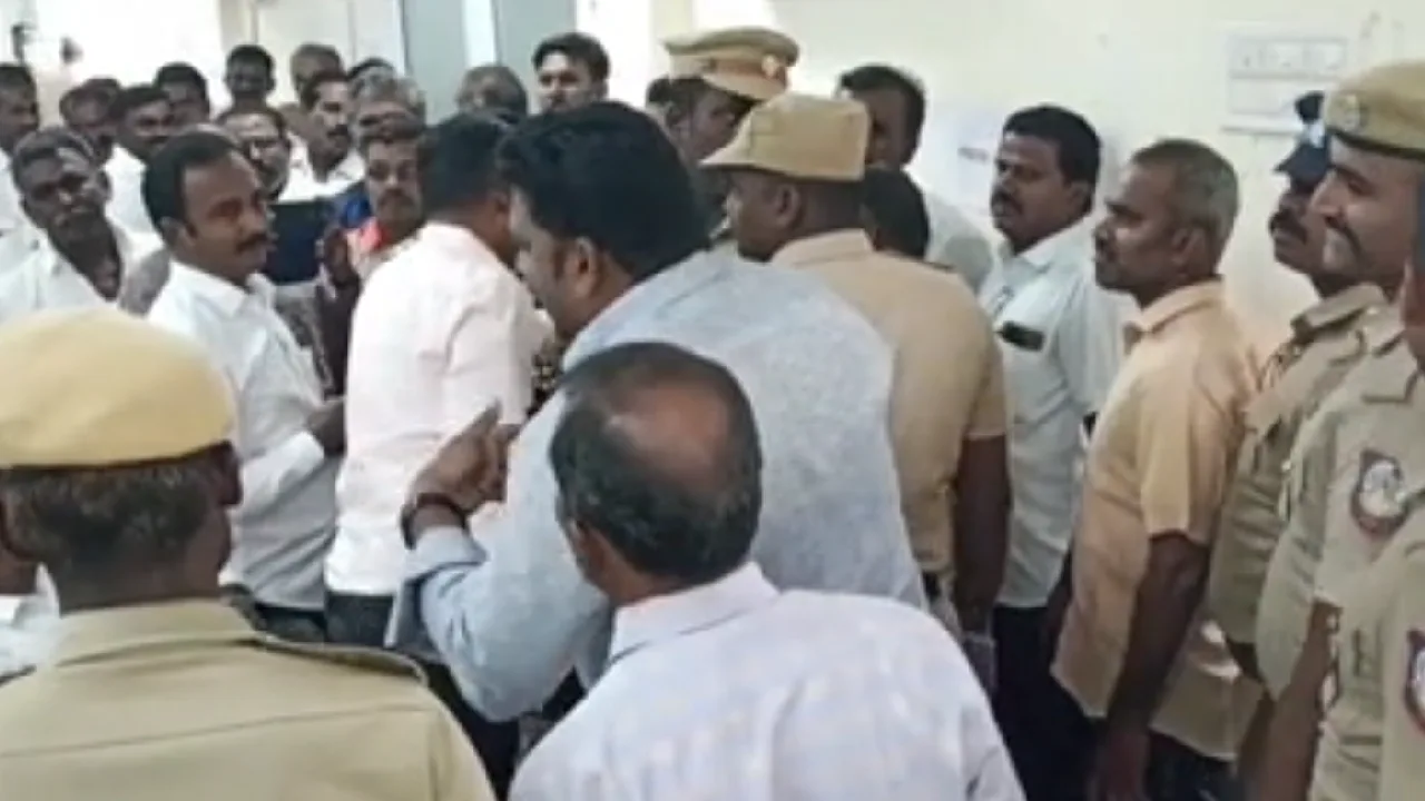 தென்காசி ஆட்சியர் அலுவலகக் கூட்டரங்கில் நடைபெற்ற வாக்காளர் பட்டியல் சிறப்பு தீவிரப் பயிற்சி கூட்டத்தில் போதிய இருக்கைகள் இல்லாததால் அதிமுக, நாதக நிர்வாகிகள் அதிகாரிகளுடன் வாக்குவாதத்தில் ஈடுபட்டனர்.