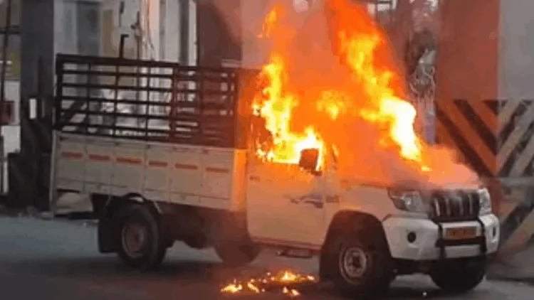 இதில், சரக்கு வேனின் முன்பகுதி தீப்பற்றி எரிந்ததால் கமலக்கண்ணன் உடனடியாக வாகனத்தில் இருந்து கீழே இறங்கி உயிர் தப்பியுள்ளார்.