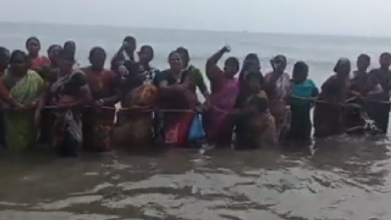 பணி நிரந்தரம் உள்ளிட்ட பல்வேறு கோரிக்கைகளை வலியுறுத்தி மெரினா கடற்கரையில் தூய்மை பணியாளர்கள் கடலில் இறங்கி போராட்டம் நடத்தினர்.