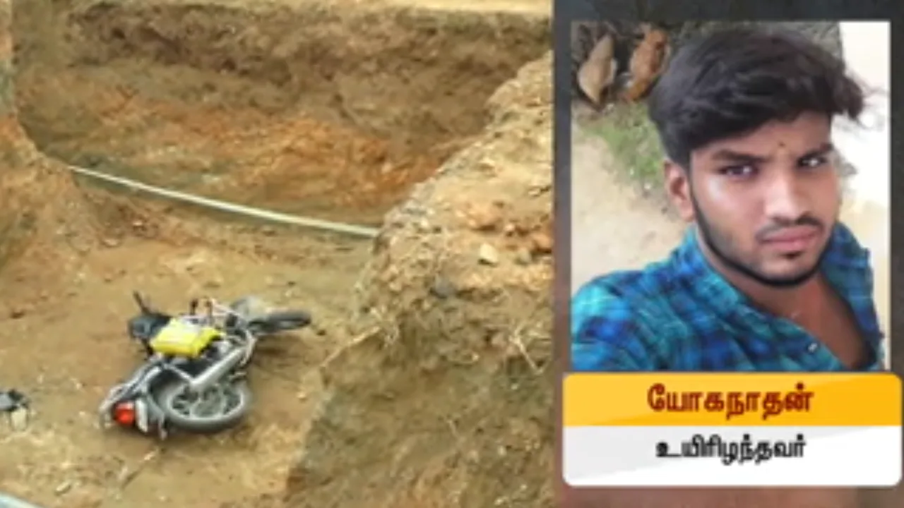 ஈரோடு மாவட்டம் விஜயமங்கலம் அருகே பாலம் கட்டுமான பணிக்காகத் தோண்டப்பட்ட பள்ளத்தில் இருசக்கர வாகனத்துடன் தவறி விழுந்த நபர் உயிரிழந்தார்.