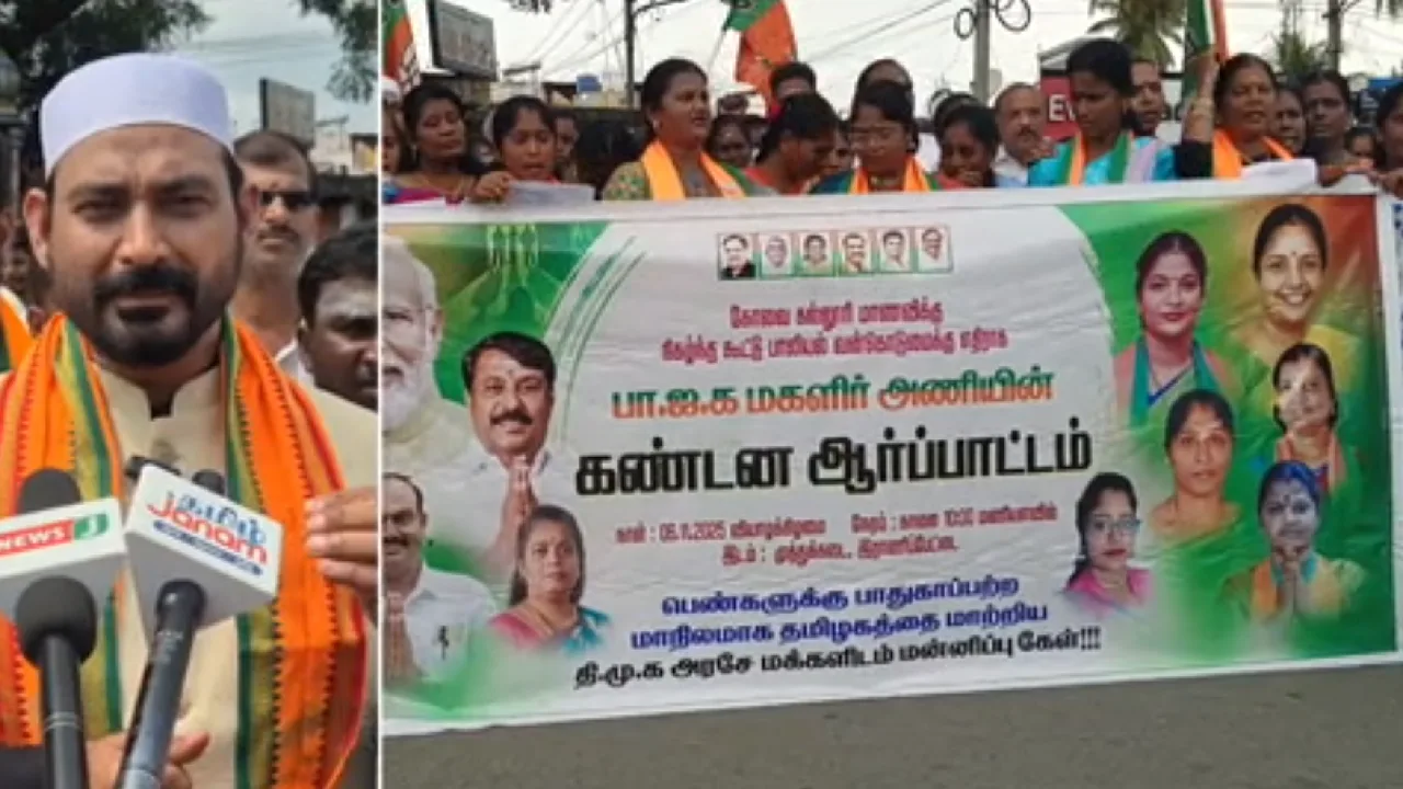 கோவை பாலியல் வன்கொடுமை சம்பவத்தைக் கண்டித்து ராணிப்பேட்டை மாவட்டம் முத்துக்கடை பேருந்து நிலையம் அருகே பாஜக மகளிர் அணி சார்பில் கண்டன ஆர்ப்பாட்டம் நடைபெற்றது.