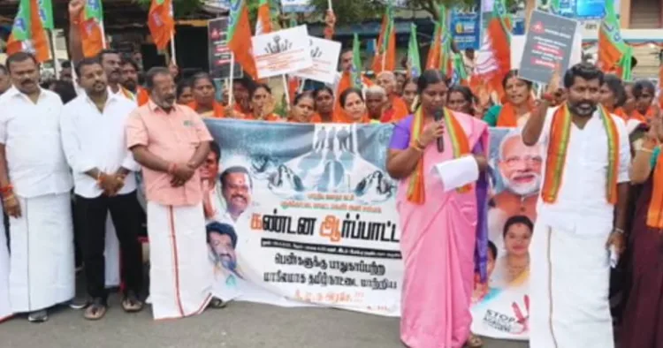 கோவையில் கல்லூரி மாணவி கூட்டு பாலியல் வன்கொடுமை செய்யப்பட்ட சம்பவத்தை கண்டித்து தமிழகம் முழுவதும் பாஜக சார்பில் ஆர்ப்பாட்டம் நடைபெற்றது.