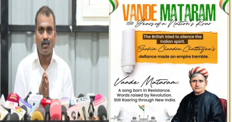 மத்திய அமைச்சர் எல்.முருகன் வெளியிட்டுள்ள அறிக்கையில், 1896ஆம் ஆண்டு வந்தே மாதரம் பாடலை வங்க கவிஞர் ரவீந்திரநாத் தாகூர் இசையமைத்து பாடியதாகவும்,