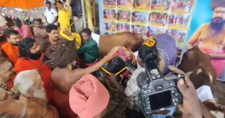 7வது நாளான இன்று, மயிலாடுதுறை அருகே உள்ள தருமபுரம் ஆதீன மடத்தில் யானைகள், குதிரைகள், பசு உள்ளிட்ட ஒன்பது வகையான விலங்குகளுக்கு சிறப்பு பூஜைகள் செய்யப்பட்டன. இந்த நிகழ்ச்சியில் வெளிநாட்டு பக்தர்களும் பங்கேற்றனர்.