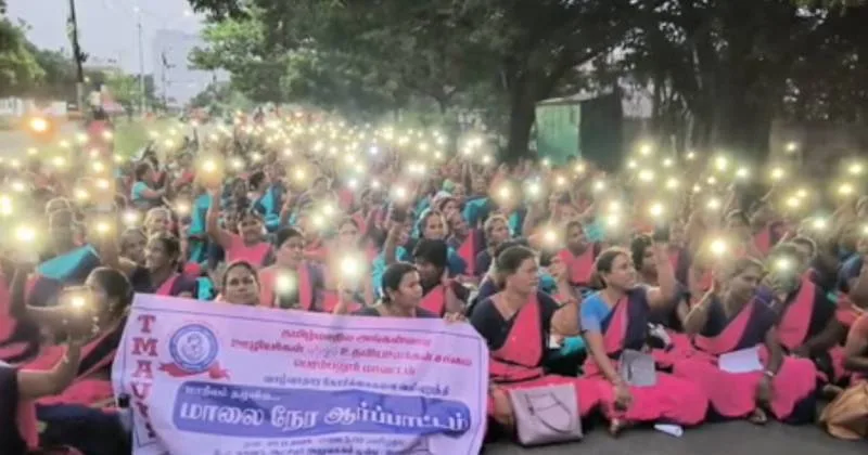 தொடர்ந்து, தமிழக அரசின் கவனத்தை ஈர்க்கும் வகையில் 300க்கும் மேற்பட்ட அங்கன்வாடி பணியாளர்கள் தங்களது செல்போன்களில் டார்ச் லைட் அடித்தவாறு ஆர்ப்பாட்டத்தில் ஈடுபட்டனர்.