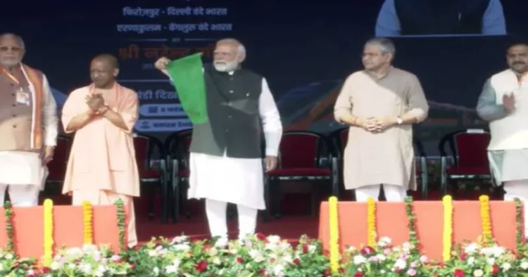 அந்த வகையில், உத்தர பிரதேச மாநிலம் வாரணாசியில் உள்ள பனாரஸ் ரயில் நிலையத்திலிருந்து பனாரஸ் – கஜுராஷோ, லக்னோ – ஷஹாரான்பூர், பெரோஸ்பூர் – டெல்லி மற்றும் எர்ணாகுளம் – பெங்களூரு ஆகிய 4 வழித்தடங்களில் புதிய வந்தே பாரத் ரயில் சேவைகளை பிரதமர் மோடி கொடியசைத்து தொடங்கி வைத்தார்.