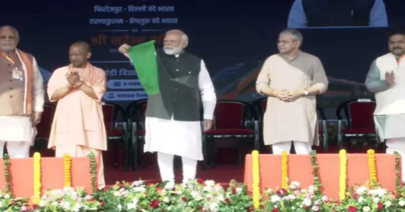 அந்த வகையில், உத்தர பிரதேச மாநிலம் வாரணாசியில் உள்ள பனாரஸ் ரயில் நிலையத்திலிருந்து பனாரஸ் – கஜுராஷோ, லக்னோ – ஷஹாரான்பூர், பெரோஸ்பூர் – டெல்லி மற்றும் எர்ணாகுளம் – பெங்களூரு ஆகிய 4 வழித்தடங்களில் புதிய வந்தே பாரத் ரயில் சேவைகளை பிரதமர் மோடி கொடியசைத்து தொடங்கி வைத்தார்.