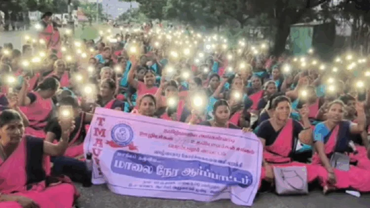 பெரம்பலூர் ஆட்சியர் அலுவலகத்தில் முதலமைச்சரின் கவனத்தை ஈர்க்கும் வகையில் செல்ஃபோனில் டார்ச் லைட் அடித்து 300-க்கும் மேற்பட்ட அங்கன்வாடி பணியாளர்கள் போராட்டத்தில் ஈடுபட்டனர்.