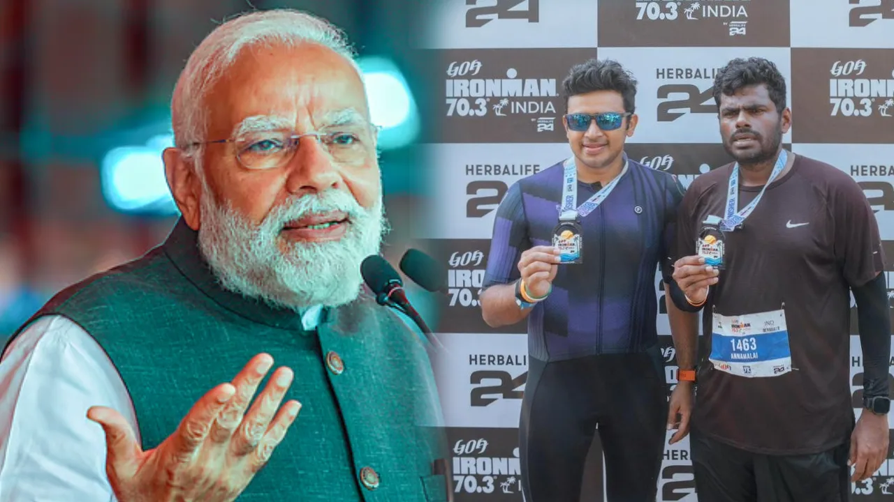 அயர்ன்மேன் 70.3 நிகழ்வில் பங்கேற்ற அண்ணாமலை, தேஜஸ்வி சூர்யாவுக்கு, பிரதமர் மோடி வாழ்த்து தெரிவித்துள்ளார்.