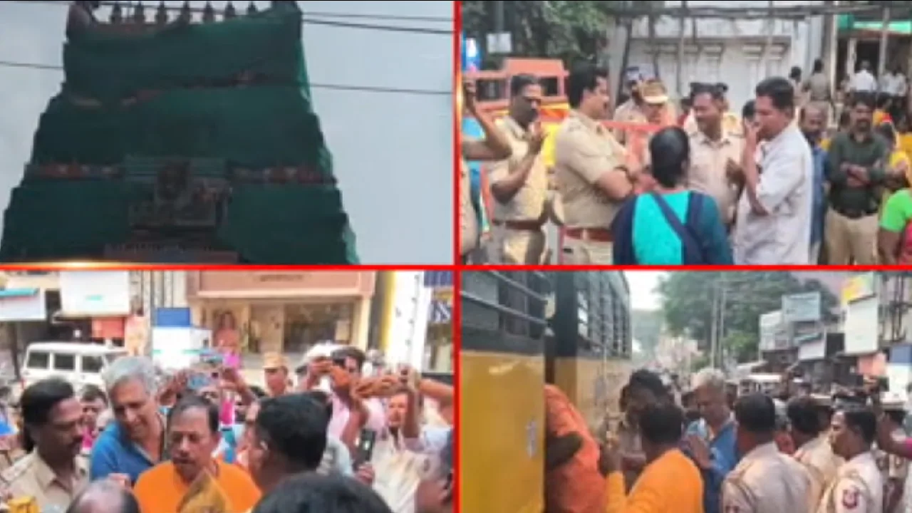 காஞ்சிபுரம் கந்தகோட்ட முருகன் கோயிலுக்குச் சென்ற விஷ்வ ஹிந்து பரிஷத் அமைப்பினரை போலீசார் வலுக்கட்டாயமாகக் கைது செய்தனர்.