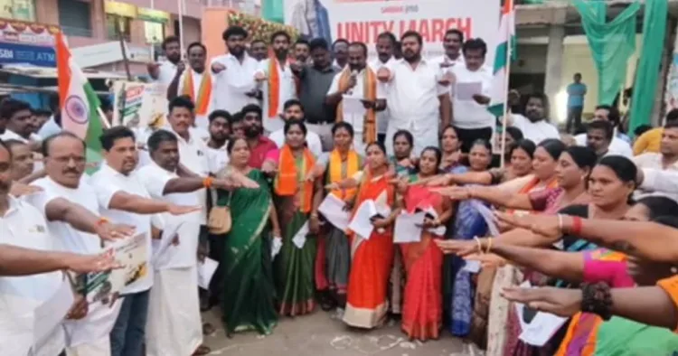 இதில், மாவட்ட பாஜக சார்பில் ஏராளமானோர் கலந்து கொண்டனர். முன்னதாக வல்லபாய் படேல் திருவுருவப் படத்திற்கு மலர் தூவி மரியாதை செய்து, உறுதிமொழி எடுத்துக்கொண்டனர்.
