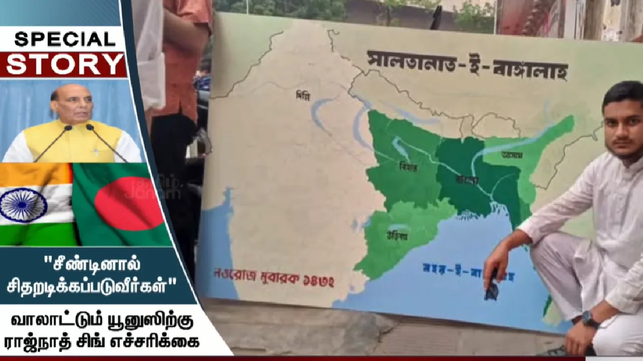 இந்தியாவை தொடர்ந்து சீண்டினால் சிதறடிக்கப்படுவீர்கள் என்று வங்கதேச இடைக்கால அரசின் ஆலோசகர் முகமது யூனுஸின் இந்திய எதிர்ப்பு கருத்துக்களுக்கு மத்திய பாதுகாப்புத் துறை அமைச்சர் ராஜ்நாத் சிங் எச்சரிக்கை விடுத்துள்ளார். அதுபற்றிய ஒரு செய்தி தொகுப்பு.