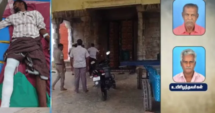 இரவு நேர காவல் பணியில் வழக்கம்போல பேச்சிமுத்து, சங்கரபாண்டியன் ஈடுபட்ட நிலையில், கோயிலில் புகுந்த மர்மநபர்கள் சிசிடிவி கேமராக்களை உடைத்துள்ளனர். சத்தம் கேட்டு சென்ற காவலாளிகளை பயங்கர ஆயுதங்களால் மர்மநபர்கள் தாக்கிவிட்டு உண்டியலை கொள்ளையடித்து சென்றுள்ளனர்.