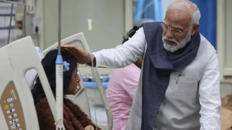 டெல்லி கார் வெடிப்பு சம்பவத்தில் பாதிக்கப்பட்டு சிகிச்சை பெறுவோரை பிரதமர் மோடி நேரில் சந்தித்து நலம் விசாரித்தார்.