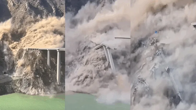 மத்திய சீனாவை திபெத்துடன் இணைக்கும் வகையில் கட்டப்பட்டிருந்த மிகப்பெரிய பாலம் ஒன்று, சில வினாடிகளில் இடிந்து தரைமட்டமான அதிர்ச்சிகர வீடியோ வைரலாகி உள்ளது.