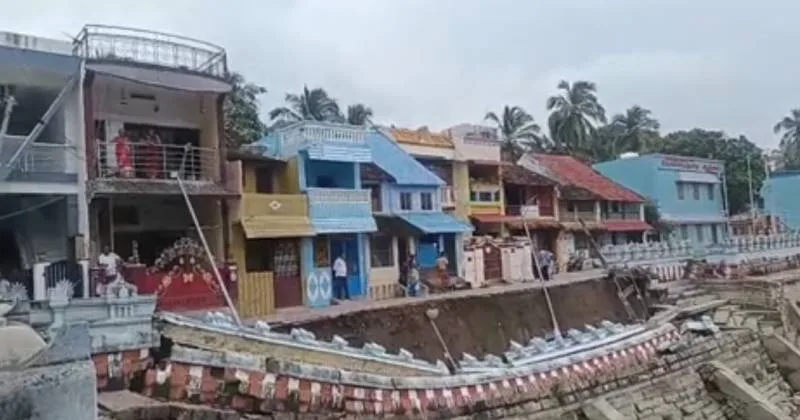 கன்னியாகுமரியில் வரலாற்று சிறப்புமிக்க சுசீந்திரம் தாணுமாலயன் கோவில் தெப்பக்குளத்தை அளவிற்கு அதிகமாக தூர்வாரியதால், தெப்பக்குளத்தின் சுற்றுச்சுவர் இடிந்து விழுந்தது.