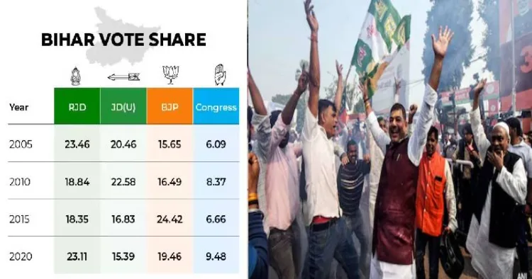 பீகார் தேர்தலில் கட்சிகள் பெற்ற வாக்கு சதவிகிதத்தை தற்போது பார்க்கலாம்…