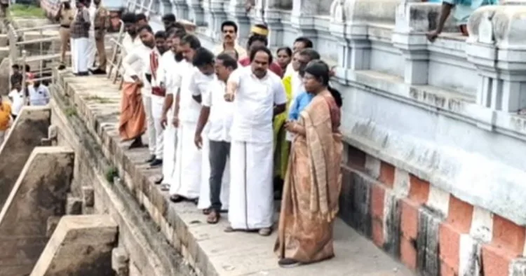 அப்போது தெப்பக்குளத்தில் இருந்து அதிகளவு மண் எடுக்கப்பட்டிருப்பதாக அப்பகுதி இளைஞர்கள் புகார் தெரிவித்தனர். தொடர்ந்து செய்தியாளர்களிடம் பேசிய அமைச்சர் மனோ தங்கராஜ், தொல்லியல் துறை வல்லுநர்கள் மற்றும் ஐஐடி வல்லுநர்களிடம் பேசி பழமை மாறாமல் தெப்பகுளத்தின் சுற்றுச்சுவர் சரி செய்யப்படும் என்று உறுதியளித்தார்.