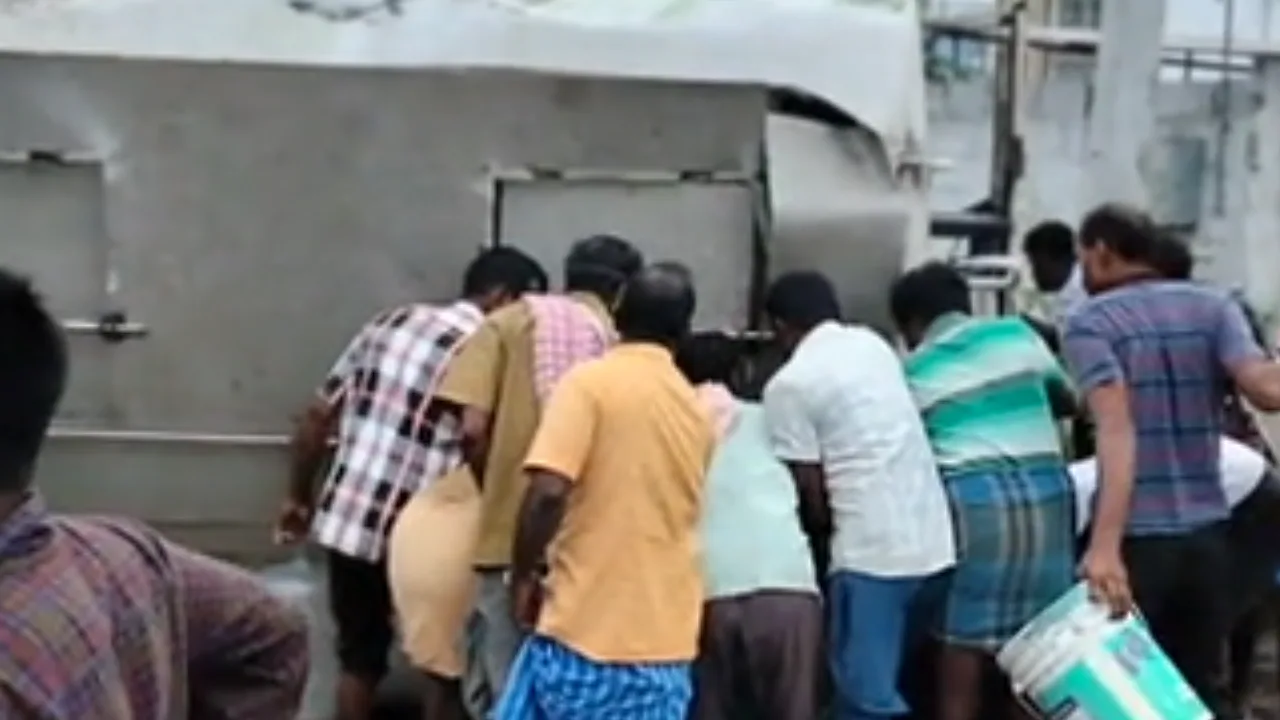 லாரி மோதி மூதாட்டி பலியான இடத்தில் டீசலை பிடிக்கப் பொதுமக்கள் ஆர்வம் காட்டியது விமர்சனத்துக்குள்ளாகியது.