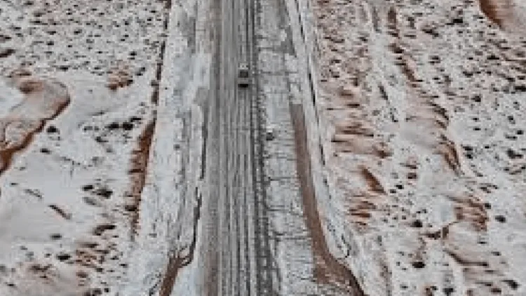 சவுதி அரேபியாவில் பெய்த ஆலங்கட்டி மழை பனி பொழிந்தது போல் காட்சியளிக்கும் வீடியோ வைரலாகி வருகிறது.