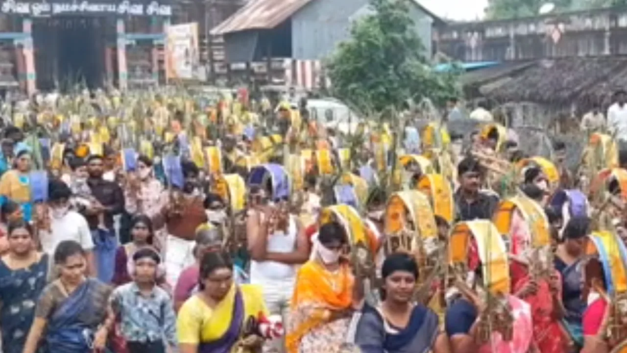 கார்த்திகை மாத முதல் சோமவாரத்தை முன்னிட்டு சுவாமிமலை முருகன் கோயிலுக்குத் திருபுவனம் நெசவாளர்கள் காவடி எடுத்துப் பாதயாத்திரை சென்றனர்.