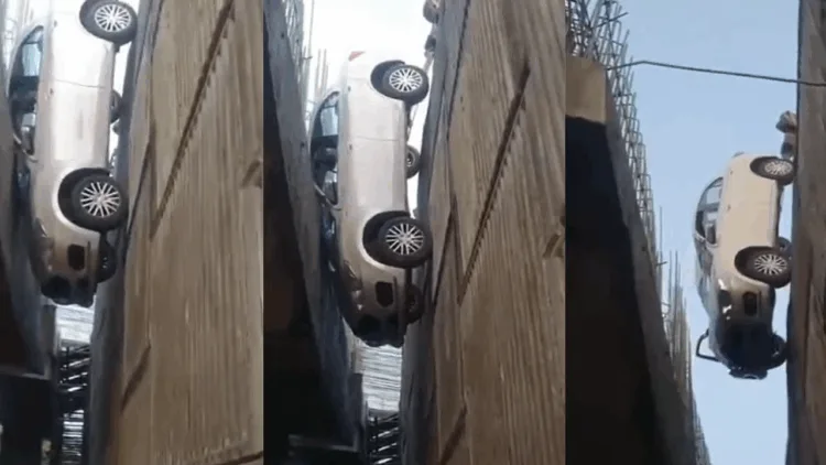 தொடர்ந்து அந்தரத்தில் தொங்கிய காரில் ஓட்டுநர் சிக்கித் தவித்தார். தகவலறிந்து சம்பவ இடத்திற்கு சென்ற போலீசார் காரில் சிக்கித் தவித்த ஓட்டுநரைப் பத்திரமாக மீட்டனர். இது குறித்த வீடியோ காட்சிகள் சமூக வலைதளங்களில் வைரலாகி வருகிறது.