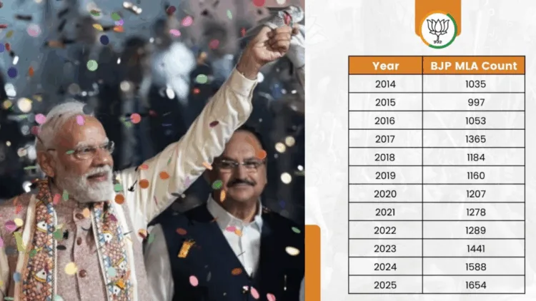 2015ல் மாநில சட்டமன்றங்களில் 997 பாஜக எம்எல்ஏக்கள் மட்டுமே இருந்த நிலையில் தற்போது, ஆயிரத்து 654 எம்எல்ஏக்கள் உள்ளனர் என அக்கட்சி தெரிவித்துள்ளது.
