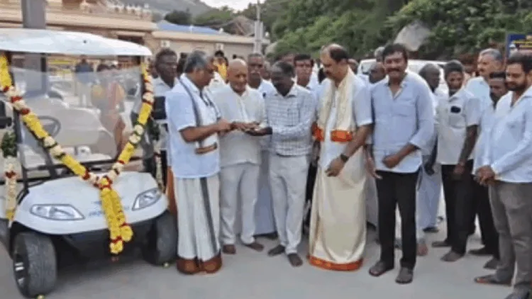 ராணிப்பேட்டை மாவட்டம் சோளிங்கரில் உள்ள பிரசித்தி பெற்ற “யோக நரசிம்மர்” கோயிலுக்குத் திருப்பதி தேவஸ்தானம் சார்பில் 11 லட்சம் ரூபாய் மதிப்பில் 2 பேட்டரி கார்கள் வழங்கப்பட்டன.