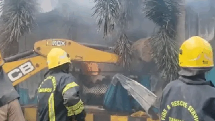 இந்நிலையில் குடோனில் தீ விபத்து ஏற்பட்டு கரும்புகை வெளியேறியுள்ளது. தகவலறிந்து சம்பவ இடத்துக்கு வந்த தீயணைப்புத்துறையினர் போராடி தீயை அணைத்தனர்.
