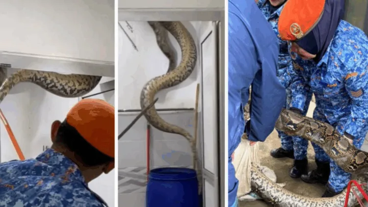 மலேசியாவின் சுங்கை பெட்டாணியில் கழிவறையின் மேல் பதுங்கி இருந்த 60 கிலோ எடையுள்ள மலைப்பாம்பால் பரபரப்பு ஏற்பட்டது.