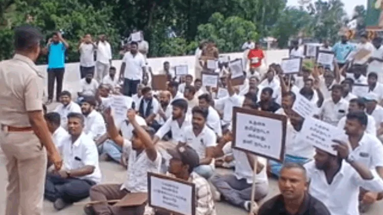 கோவையைச் சேர்ந்த தங்கவேல் என்பவர் நேற்று தாக்கப்பட்டதை கண்டித்து, கல்லார் சோதனைச் சாவடியில் இந்தப் போராட்டம் முன்னெடுக்கப்பட்டது.