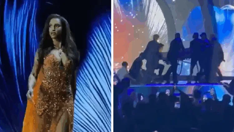தாய்லாந்தில் நடைபெற்று வரும் மிஸ் யூனிவர்ஸ் 2025 போட்டியின்போது மேடையில் இருந்து மிஸ் ஜமைக்கா தவறி கிழே விழுந்ததால் பார்வையாளர்கள் அதிர்ச்சிக்குள்ளாகினர்.