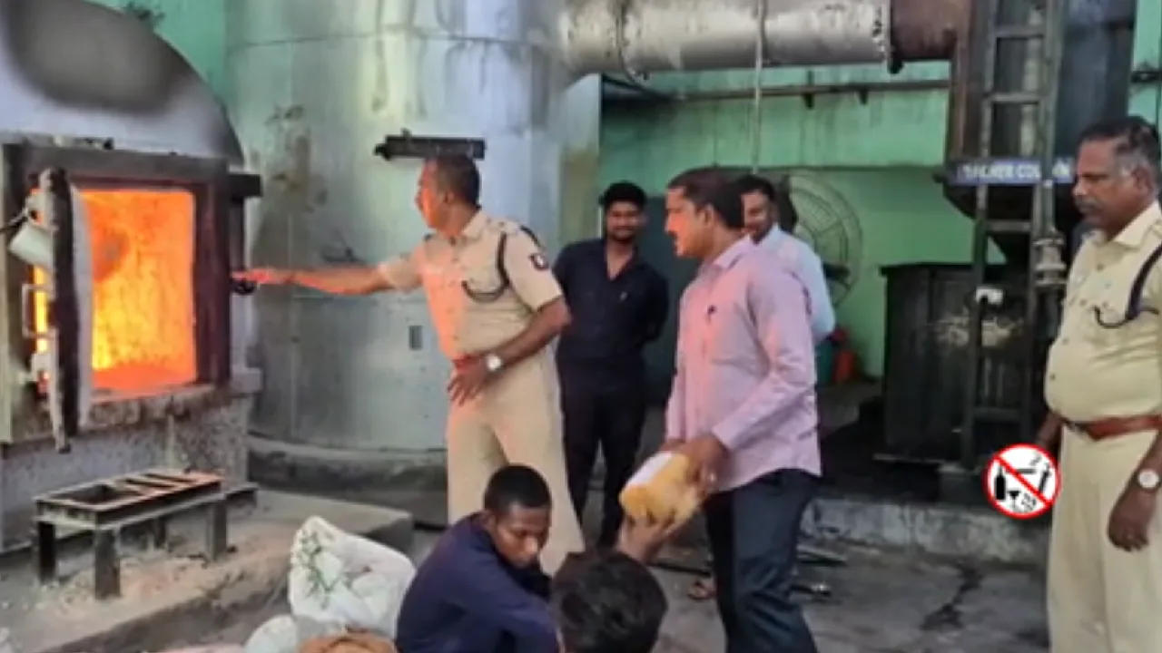 தனியார் எரியூட்டு நிறுவனத்தில் 5 கோடி ரூபாய் மதிப்பிலான 1000 கிலோ கஞ்சா எரிக்கப்பட்டது.
