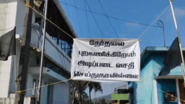நீலகிரி மாவட்டம் பந்தலூரில் பேரவை தேர்தலைப் புறக்கணிக்க உள்ளதாகக் கூறி கிராம மக்கள் வீடுகளில் கருப்பு கொடி கட்டி நூதன போராட்டத்தில் ஈடுபட்டனர்.