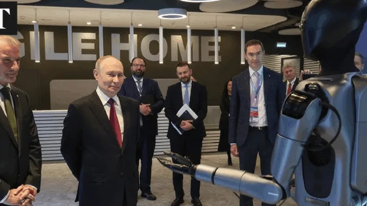 ரஷ்யாவின் மாஸ்கோ நகரில் நடைபெற்ற ஏஐ கண்காட்சிக்கு வருகை தந்த அதிபர் புதினை மனித வடிவ ரோபோ நடனமாடி வரவேற்ற காட்சி வைரலாகி உள்ளது.