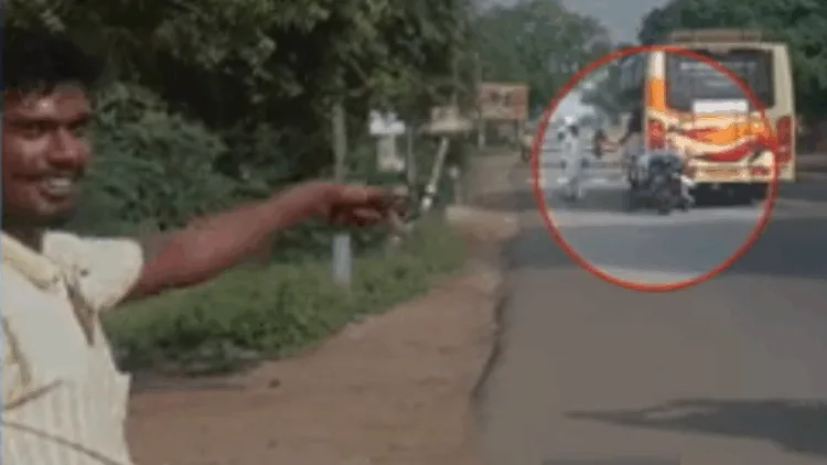 அப்போது அவ்வழியாக இருசக்கர வாகனத்தில் சென்ற இளைஞர் அதனை வேடிக்கை பார்த்துவாறே சென்றுள்ளார்.