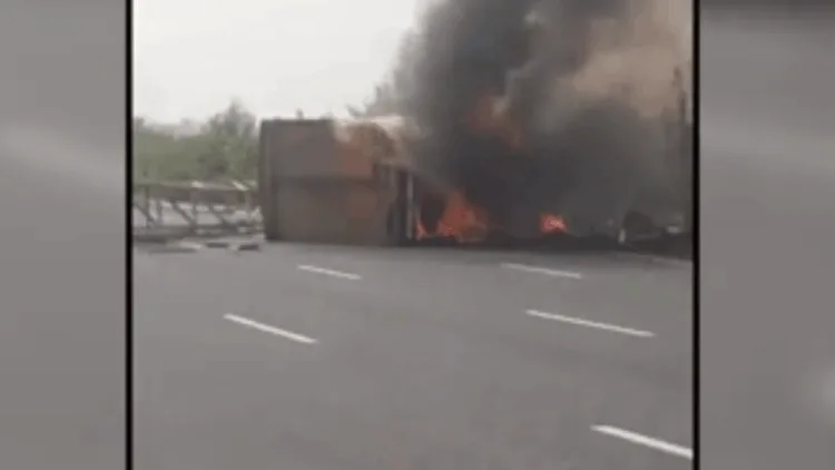 ராஜஸ்தானில் டெல்லி – மும்பை தேசிய நெடுஞ்சாலையில் கண்டெய்னர் லாரி வெடித்துச் சிதறிய அதிர்ச்சி காட்சிகள் வெளியாகியுள்ளன.