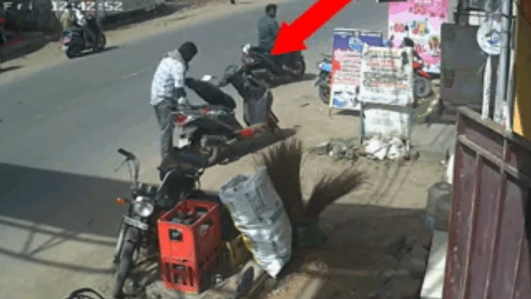 செங்கல்பட்டு மாவட்டம் திருப்போரூரில் இருசக்கர வாகனத்தில் வைக்கப்பட்ட ஒரு லட்சத்து 66 ஆயிரம் ரொக்கத்தை இருவர் திருடிச் சென்ற காட்சி வெளியாகி உள்ளது.