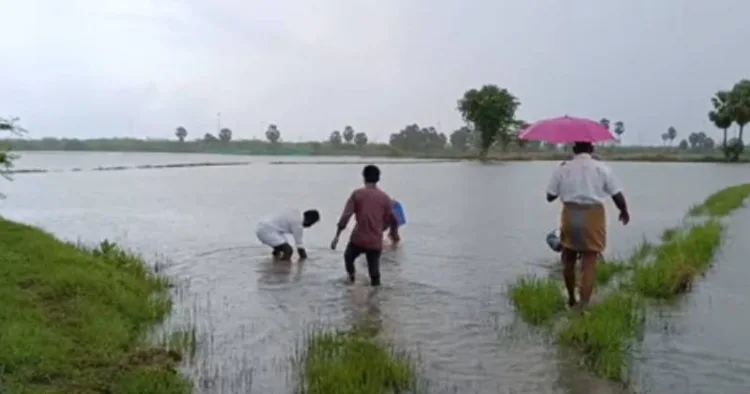 நாகை மாவட்டத்தில் பெய்த கனமழை காரணமாக வயல்களில் தண்ணீர் தேங்கியதால் பயிர்கள் அழுகும் நிலை ஏற்பட்டுள்ளது.