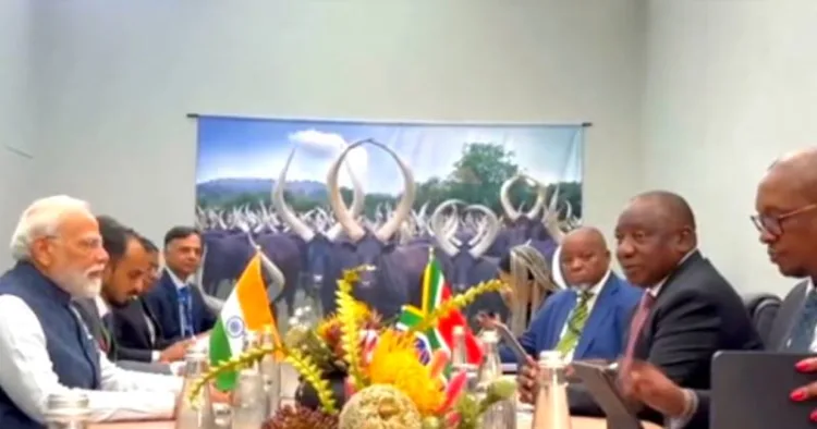 இதனை தொடர்ந்து, தென்னாப்பிரிக்க அதிபர் சிறில் ராமபோசாவை சந்தித்து பிரதமர் மோடி பேச்சுவார்த்தை நடத்தினார்.