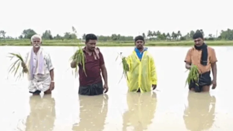 இந்நிலையில், மழை நீரை வெளியேற்ற மாவட்ட நிர்வாகம் உரிய நடவடிக்கை எடுக்க வேண்டும் எனவும் தமிழக அரசு உரிய நிவாரணமும் இழப்பீட்டையும் வழங்க வேண்டுமென்றும் விவசாயிகள் கோரிக்கை விடுத்துள்ளனர்.
