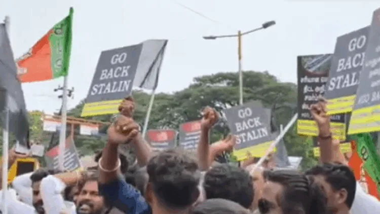கோவை வருகை புரிந்த முதலமைச்சர் ஸ்டாலினுக்கு எதிராகக் கருப்புக்கொடி காட்டி பாஜகவினர் ஆர்ப்பாட்டத்தில் ஈடுபட்டனர்.