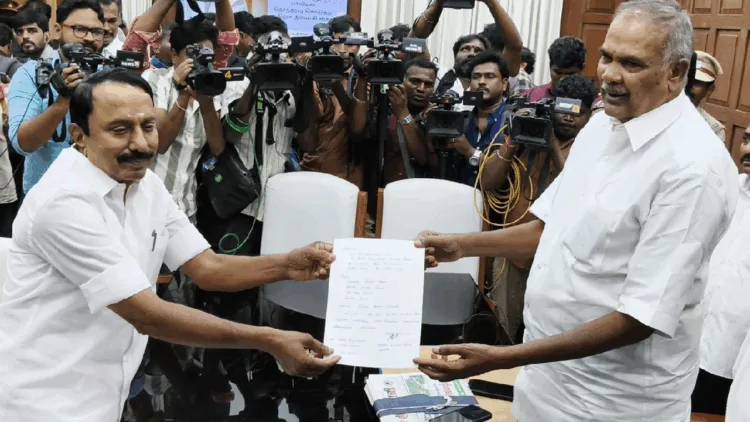 சென்னை தலைமைச்செயலகத்திற்கு வந்த செங்கோட்டையன், சபாநாயகர் அப்பாவுவை சந்தித்து தனது ராஜினாமா கடிதத்தை வழங்கினார்.