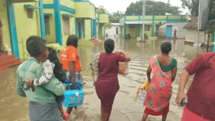 இதேபோல் ராமஸ்வரத்தில் உள்ள தேசிய நெடுஞ்சாலையிலும் மழைநீர் முழங்கால் அளவுக்குத் தேங்கி உள்ளதால் வாகன ஓட்டிகள் அவதிக்கு உள்ளாகினர்.