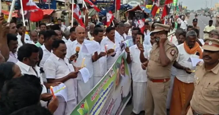 அதன் ஒரு பகுதியாக செஞ்சி ஒருங்கிணைந்த ஒன்றிய அதிமுக சார்பில் ஆலம்பூண்டி பகுதியில் நூற்றுக்கும் மேற்பட்ட அதிமுகவினர் கையில் மெழுகுவர்த்தி ஏந்தி முழக்கங்கள் எழுப்பி கண்டன ஆர்ப்பாட்டத்தில் ஈடுபட்டனர். அப்போது, அதிமுகவினரை காவல்துறையினர் வலு கட்டாயமாக கைது செய்ததால் பரபரப்பு ஏற்பட்டது.