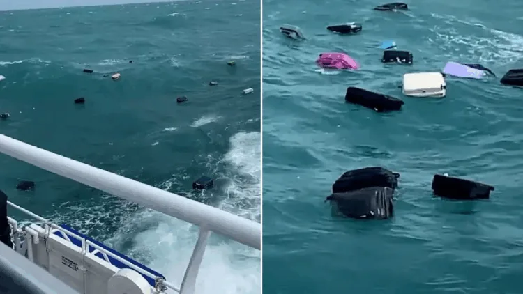 தாய்லாந்தில் கப்பலில் இருந்து சுற்றுலா பயணிகளின் உடமைகள் கடலில் விழுந்த வீடியோ வைரலாகி வருகிறது.